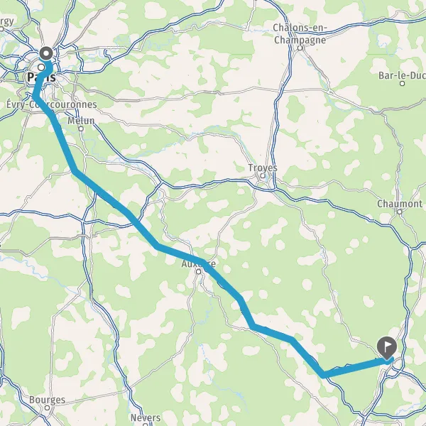Prendre à droite et rejoindre A6a E5. Continuer sur 258 kilomètres