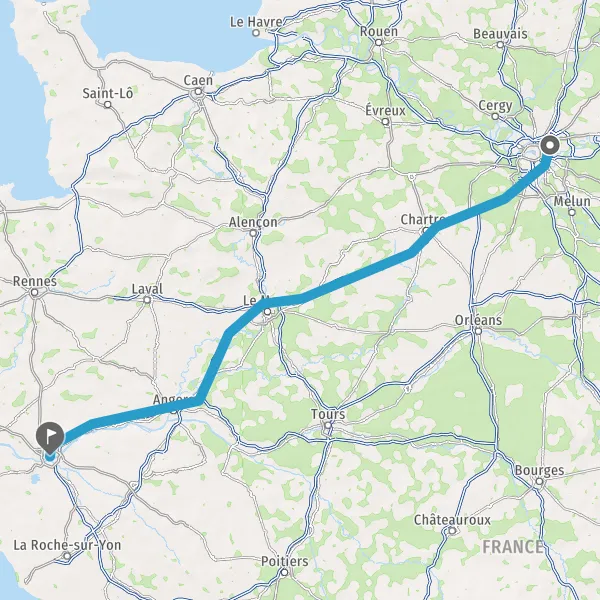 Prendre à droite et rejoindre A11 E50. Continuer sur 147 kilomètres