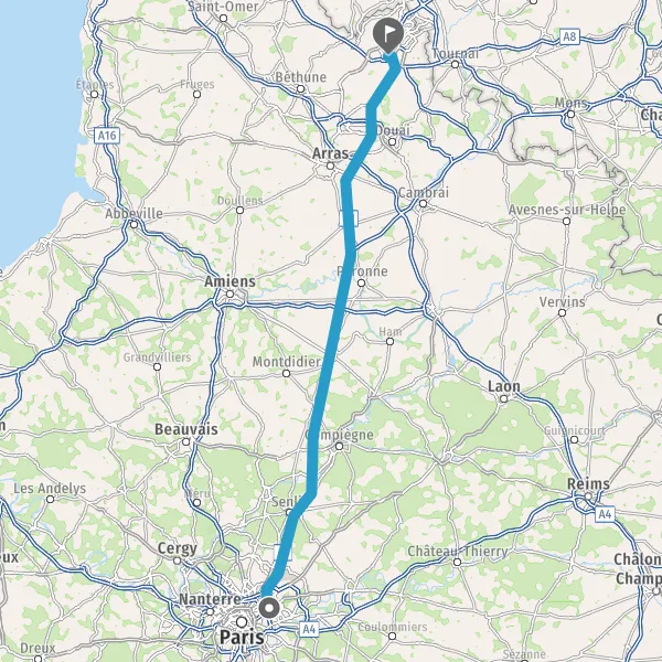 Continuer et rejoindre A1 A1 E19. Continuer sur 3,8 kilomètres