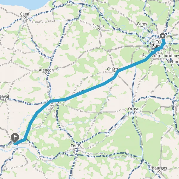 Prendre à droite et rejoindre A11 E50. Continuer sur 147 kilomètres
