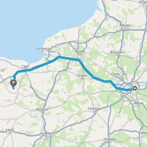 Prendre à droite et rejoindre A84 E401. Continuer sur 21 kilomètres