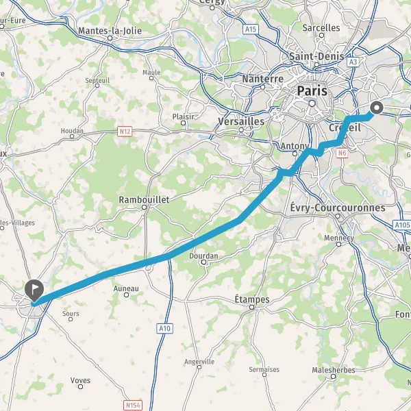 Prendre à droite et rejoindre A10. Continuer sur 34 kilomètres