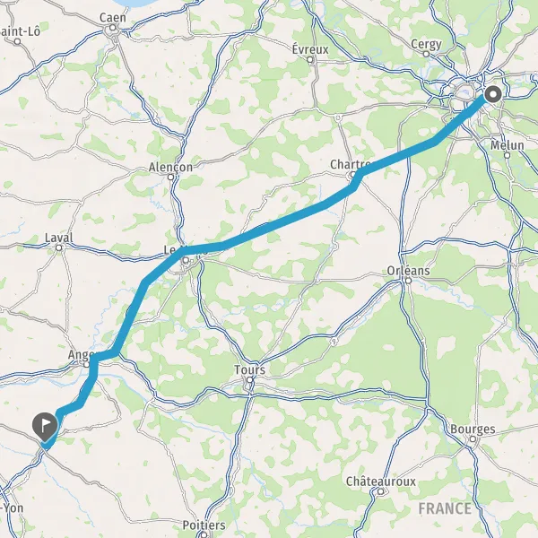Prendre à droite et rejoindre A11 E50. Continuer sur 147 kilomètres