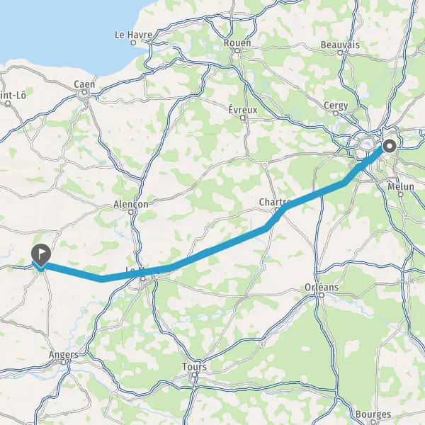 Prendre à droite et rejoindre A11 E50. Continuer sur 147 kilomètres