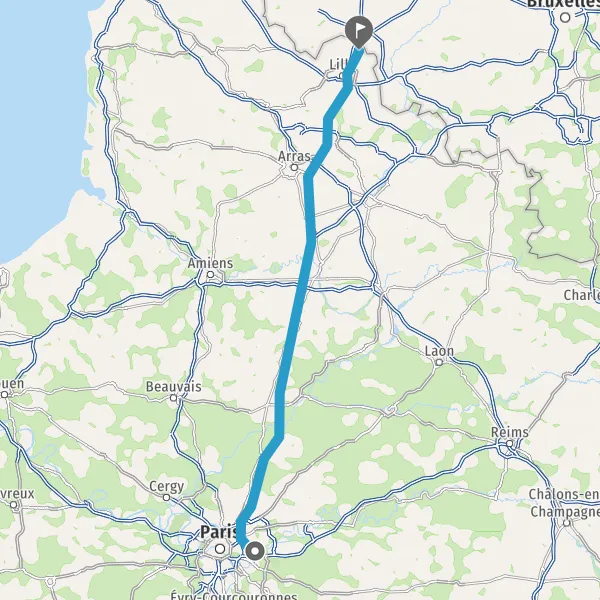 Continuer et rejoindre A1 A1 E15 E19. Continuer sur 121 kilomètres