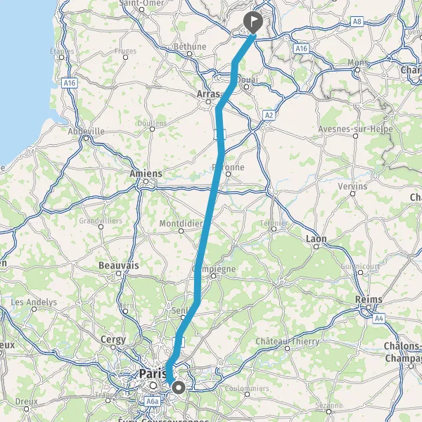 Continuer et rejoindre A1 A1 E15 E19. Continuer sur 121 kilomètres