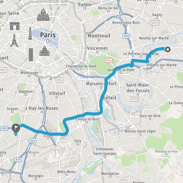 Prendre à droite et rejoindre A86. Continuer sur 4,2 kilomètres