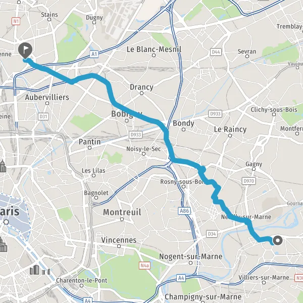 Prendre à gauche et rejoindre N186 (Route de la Courneuve). Continuer sur 210 mètres