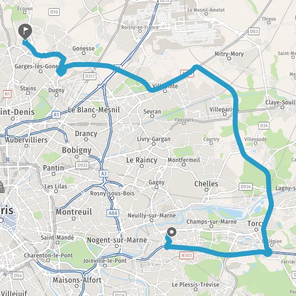 Prendre à gauche et rejoindre A104. Continuer sur 1,7 kilomètre