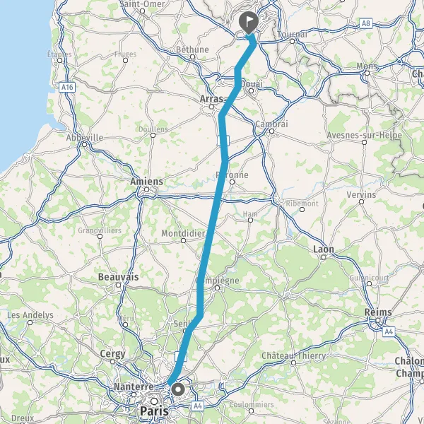 Continuer et rejoindre A1 A1 E15 E19. Continuer sur 121 kilomètres