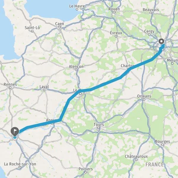 Prendre à droite et rejoindre A11 E50. Continuer sur 147 kilomètres