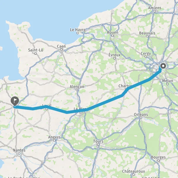 Prendre à droite et rejoindre A11 E50. Continuer sur 147 kilomètres