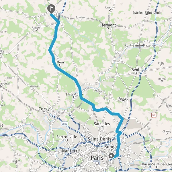 Prendre à droite et rejoindre N104 (La Francilienne). Continuer sur 8,8 kilomètres