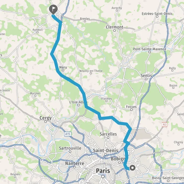 Prendre à droite et rejoindre N104 (La Francilienne). Continuer sur 8,8 kilomètres