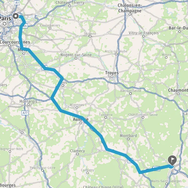 Prendre à droite et rejoindre A6. Continuer sur 152 kilomètres