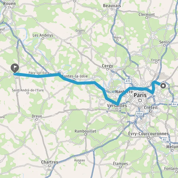 Sortir et rejoindre N13 (Route Nationale 13). Continuer sur 500 mètres