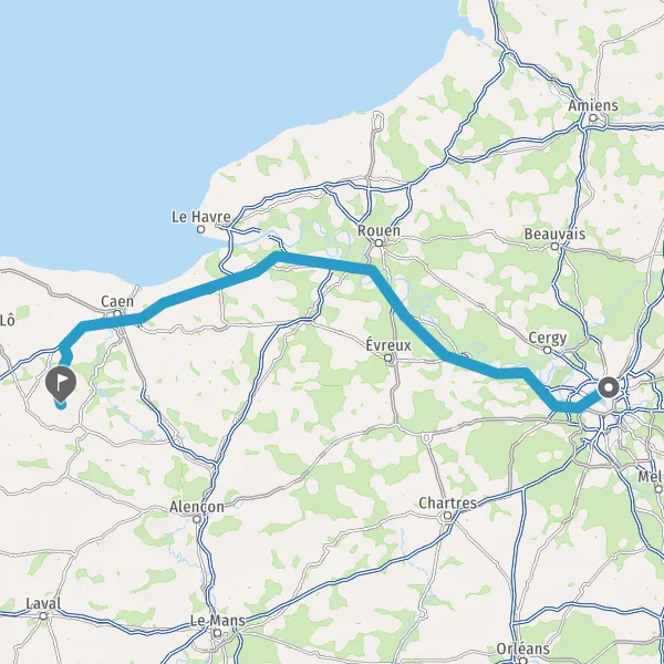 Prendre à droite et rejoindre A84 E401. Continuer sur 21 kilomètres