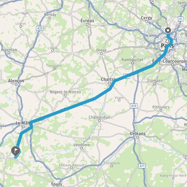Prendre à droite et rejoindre A11 E50. Continuer sur 135 kilomètres