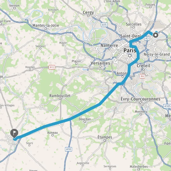 Prendre à droite et rejoindre A10. Continuer sur 7,9 kilomètres