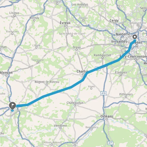 Prendre à droite et rejoindre A10. Continuer sur 34 kilomètres