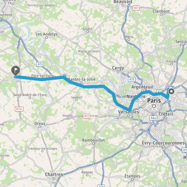Sortir et rejoindre N13 (Route Nationale 13). Continuer sur 500 mètres