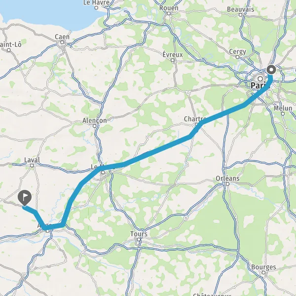 Prendre à droite et rejoindre A11 E50. Continuer sur 147 kilomètres