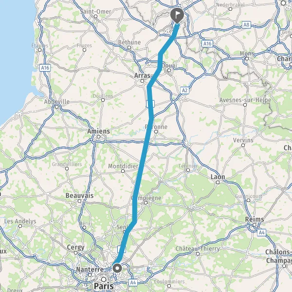 Continuer et rejoindre A1 A1 E15 E19. Continuer sur 121 kilomètres