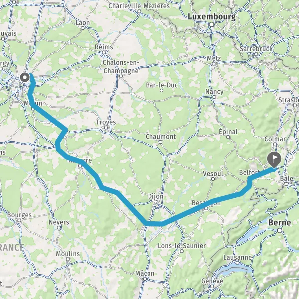 Prendre à droite et rejoindre A36. Continuer sur 221 kilomètres
