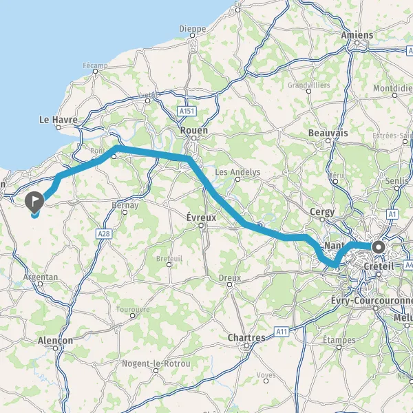 | Distance en voiture | 203 km à 233 km |