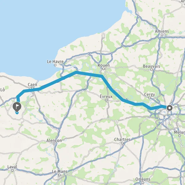 Prendre à droite et rejoindre A84 E401. Continuer sur 21 kilomètres