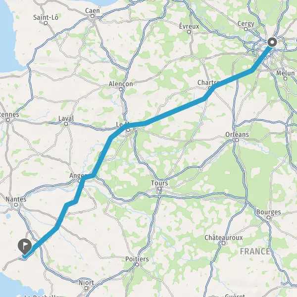Prendre à droite et rejoindre A11 E50. Continuer sur 147 kilomètres