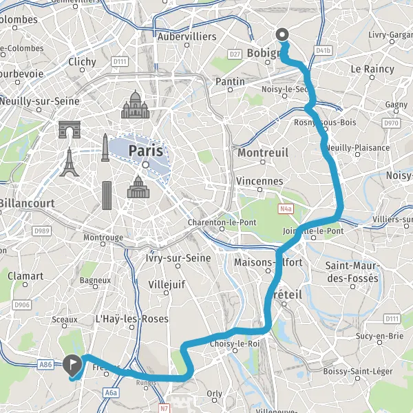 Prendre à droite et rejoindre A86. Continuer sur 4,2 kilomètres