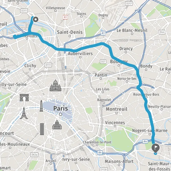 Continuer N186 (Route de la Courneuve) sur 850 mètres