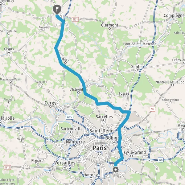 Prendre à droite et rejoindre N104 (La Francilienne). Continuer sur 8,8 kilomètres
