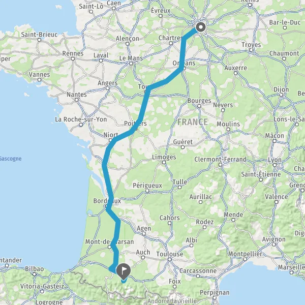 Prendre à droite et rejoindre A65. Continuer sur 149 kilomètres