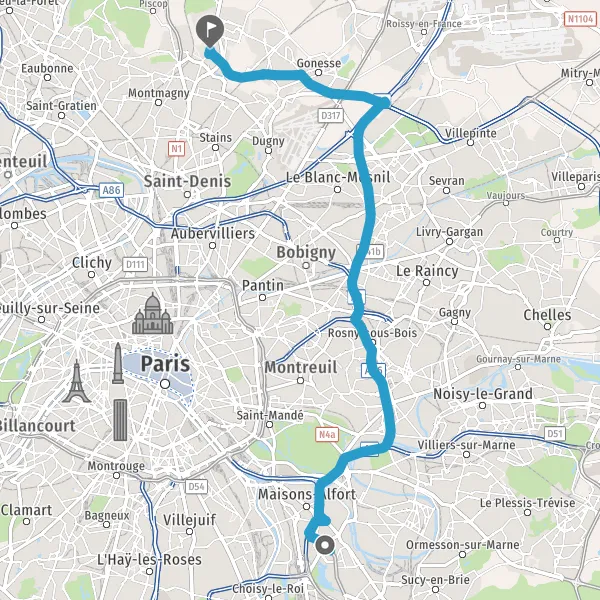 Prendre à gauche et rejoindre A86. Continuer sur 3 kilomètres