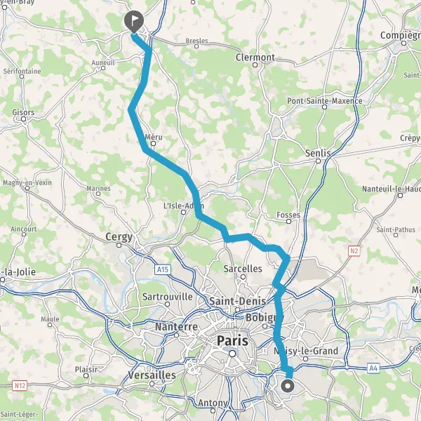 Prendre à droite et rejoindre N104 (La Francilienne). Continuer sur 8,8 kilomètres
