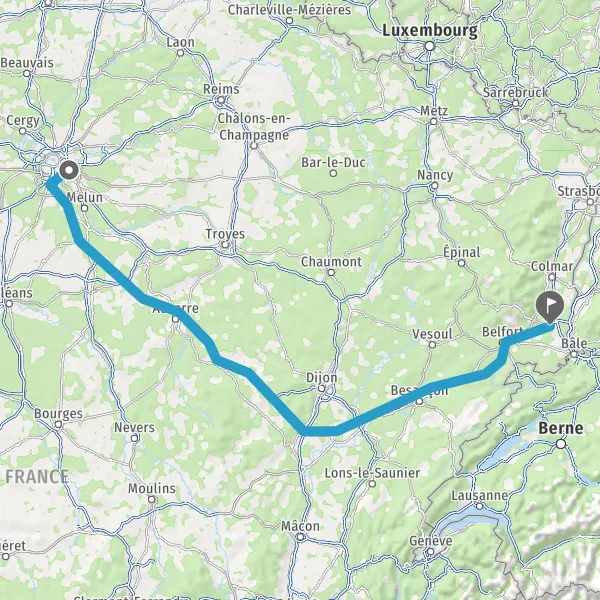 Prendre à droite et rejoindre A36 E60. Continuer sur 53 kilomètres