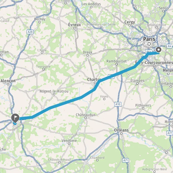 Prendre à droite et rejoindre A10. Continuer sur 34 kilomètres