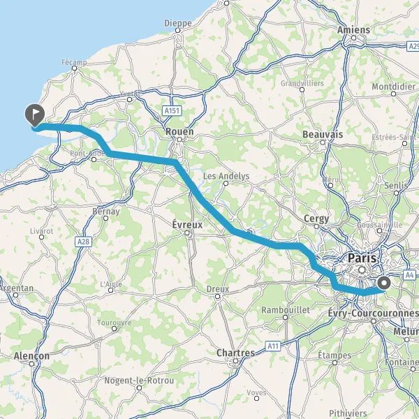 Continuer et rejoindre A13 E5. Continuer sur 135 kilomètres