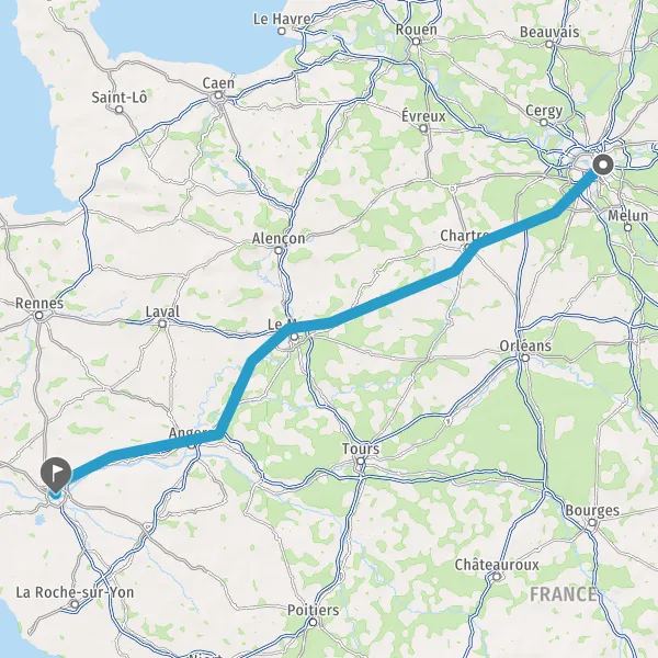 Prendre à droite et rejoindre A11 E50. Continuer sur 147 kilomètres