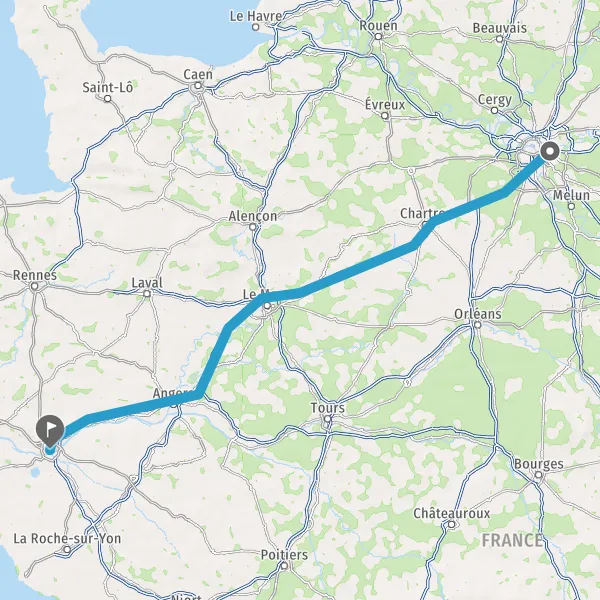 Prendre à droite et rejoindre A11 E50. Continuer sur 147 kilomètres