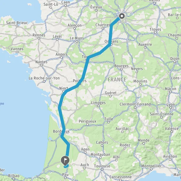 Prendre à droite et rejoindre A65. Continuer sur 105 kilomètres