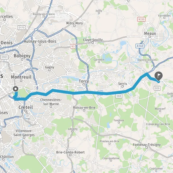 | Distance en voiture | 41,7 km à 45,6 km |