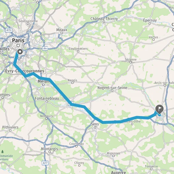 Prendre à droite et rejoindre A6a E5. Continuer sur 21 kilomètres