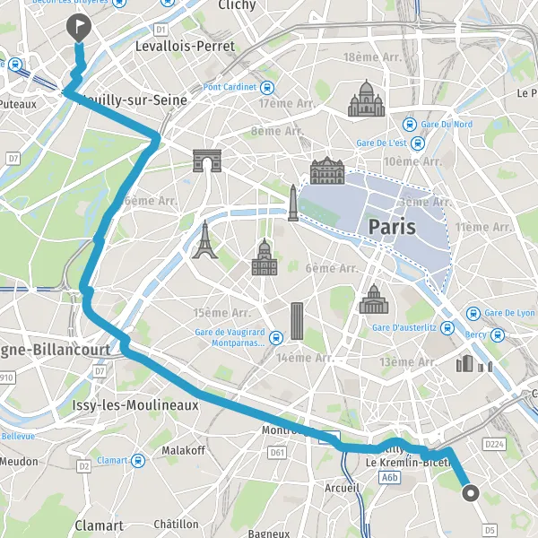 Prendre à droite et rejoindre D913 (Boulevard de Neuilly). Continuer sur 250 mètres