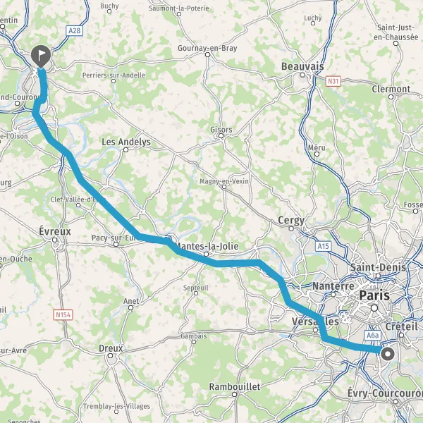 Prendre à gauche et rejoindre A13 E5. Continuer sur 69 kilomètres