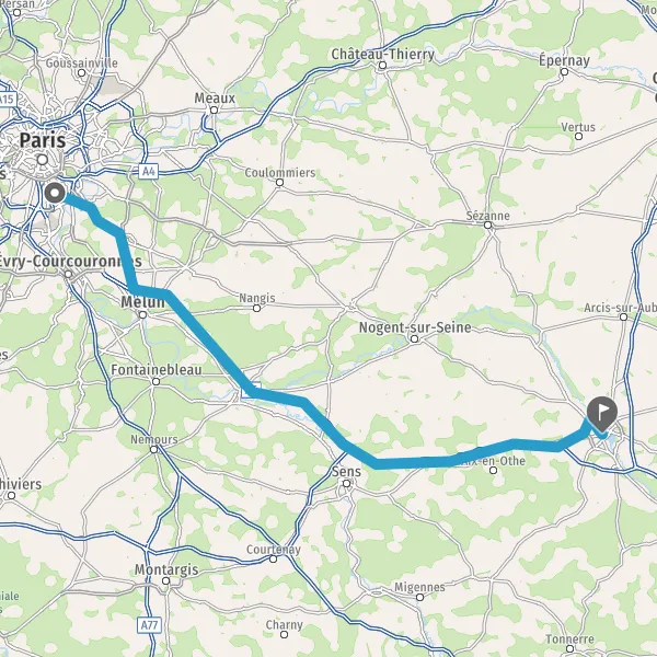 Prendre à droite et rejoindre A5. Continuer sur 64 kilomètres