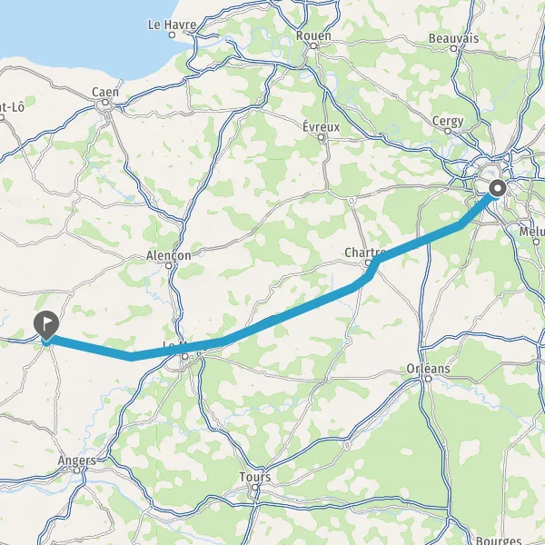 Prendre à droite et rejoindre A11 E50. Continuer sur 147 kilomètres