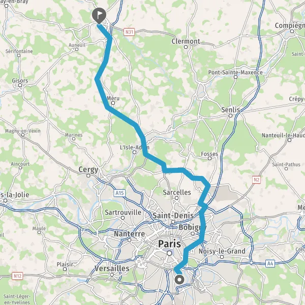 Prendre à droite et rejoindre N104 (La Francilienne). Continuer sur 8,8 kilomètres